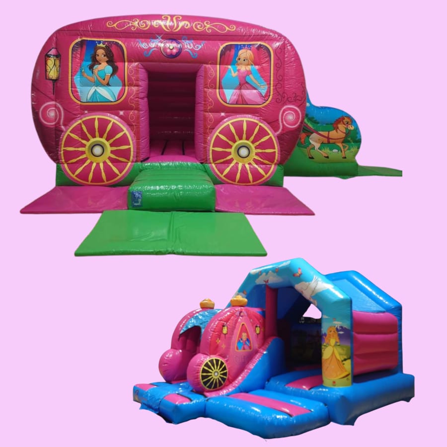 The perfect package for your little princess! This package includes our large princess carriage castle with a big slide and our small princess combi perfect for the smaller kids!