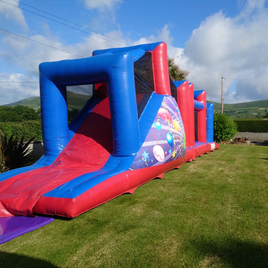 Our party time obstacle course is perfect for all ages! With its neutral theme, this will ensure everyone enjoys it. This inflatable has endless obstacles finishing with a huge slide, providing hours of entertainment.