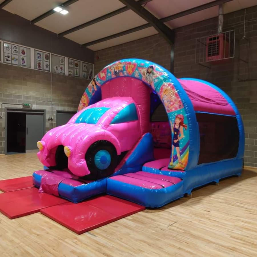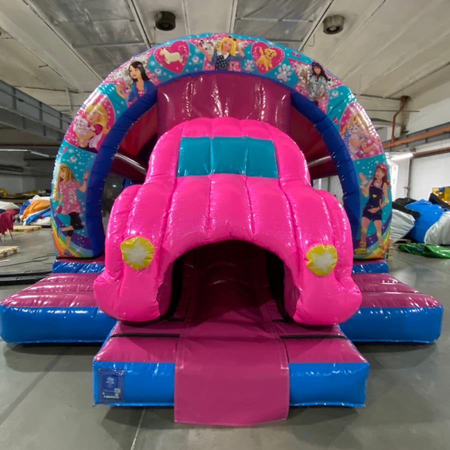 In a world full of pink & glitter, this one is PERFECT for all your little Barbie obsessed kids. Hop inside barbies dream car & enjoy the large bounce area, slide and disco!
