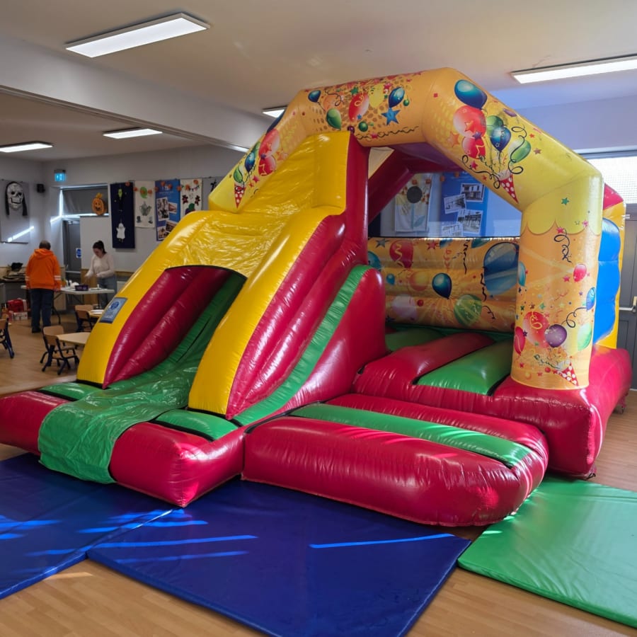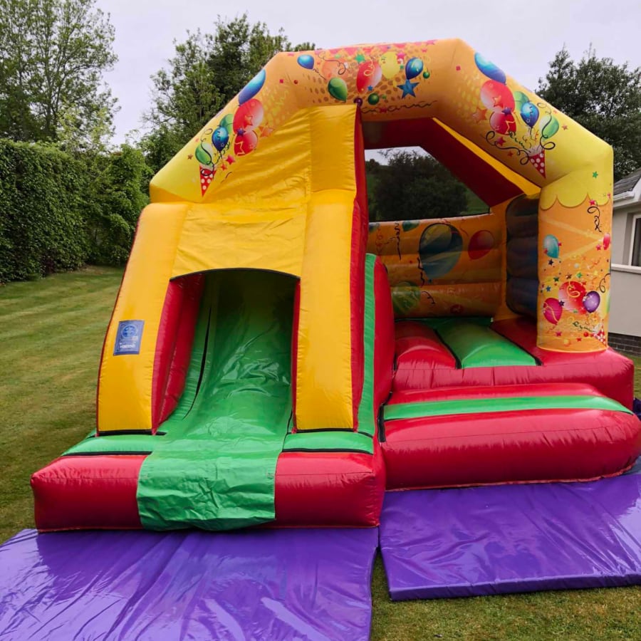 This party time front slide combi is extremely popular for both girls & boys due to it's vibrant colours & neutral theme! It's compact size allows it to fit into most areas while still offering lots of fun with it's bounce area and front facing slide!