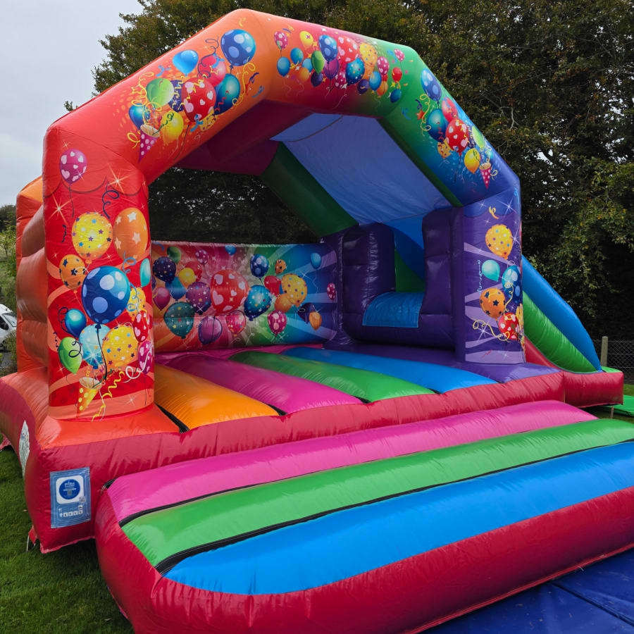 This Multicoloured Party Theme Combi is perfect for everyone and for any party. This inflatable has a big bounce area and a slide out to one side. Add a splash of colour & fun to your party with this inflatable!