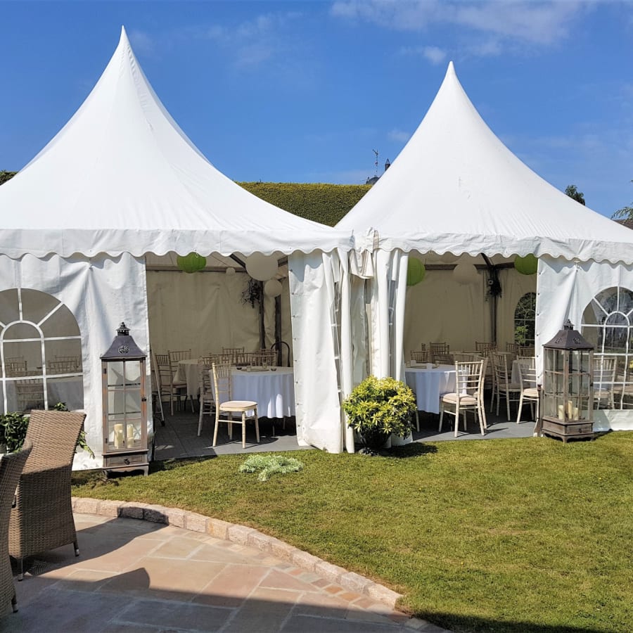 Our 4.5m x 9m Luxury Pagoda Style Marquees are the perfect venue for your next event. Whether it's a birthday, engagement, christening or holy communion, they are the most luxurious style of shelter for your guests!